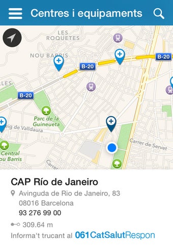 061 CatSalut Respon incluye un mapa que muestra centros y equipamientos sanitarios a tu alrededor, además de consejos y noticias.
