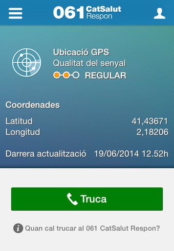 Con 061 CatSalut Respon podrás guardar tus datos personales, a los que se añaden tu posición gracias al GPS de tu teléfono.